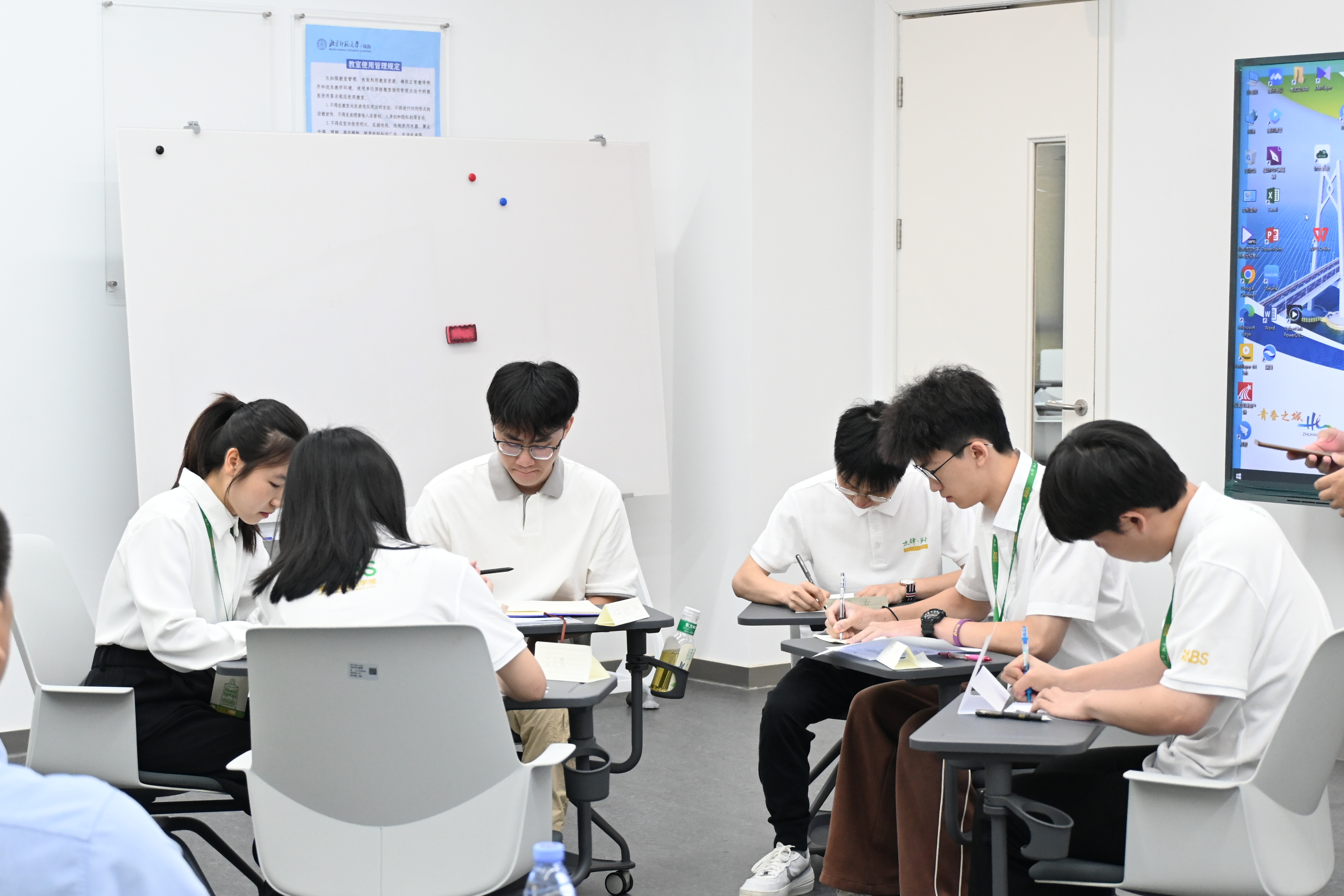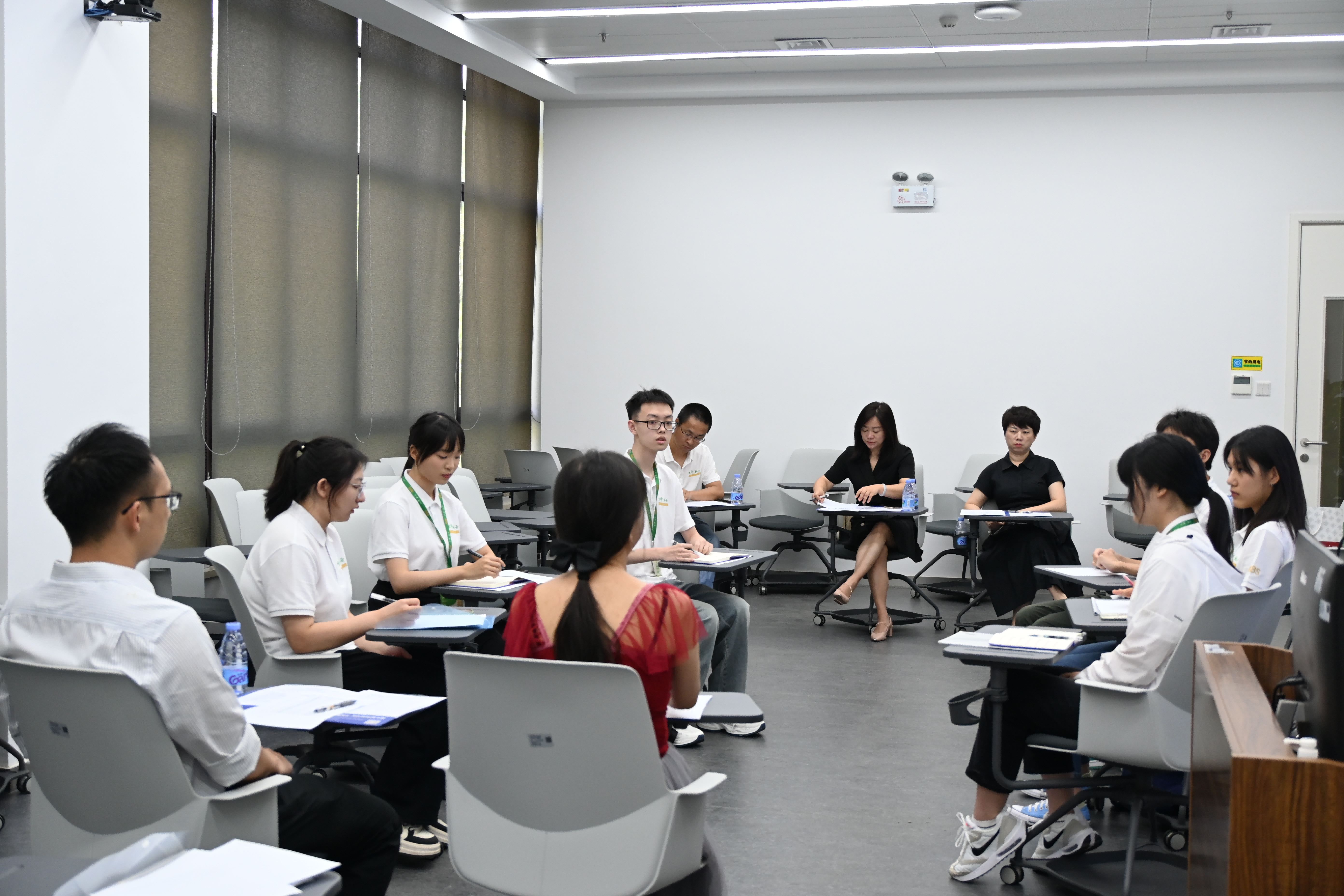 8日上午,国际商务、金融及会计的营员们按各自的专业分组,进行无领导小组讨论。在无领导小组讨论中,营员们阐述自己的观点,展开集中而深入的讨论,分享与交流各自的想法。无领导小组讨论以情景模拟的方式,通过让营员们围绕给定材料进行讨论与思考,展现他们的专业素养、政治素养、英文能力、团队合作以及语言表达能力,实现对营员综合素质的多维度考察。