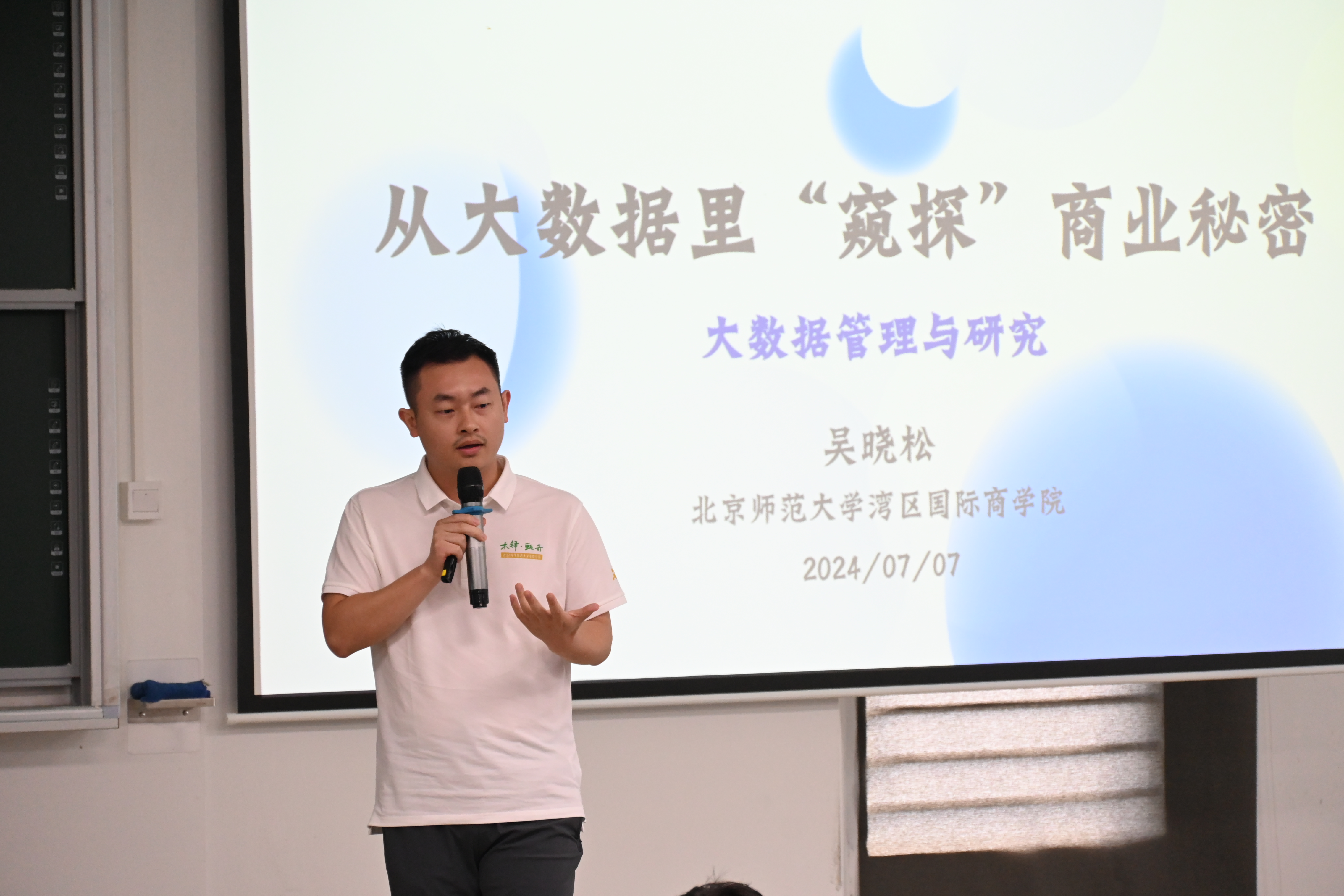 工商管理专业负责人吴晓松副教授为营员做“从大数据里‘窥探’商业秘密”的精彩学术讲座。吴晓松通过事例和与营员的互动生动形象地向营员们说明了研究生从知识消费者向创造者的转变,需要掌握科学规范的研究方法和拥有独立学习能力,他还深刻剖析了管理研究的范式转变,以及大数据管理与研究在当代社会的重要性和广泛应用,营员们从讲座中受益匪浅。