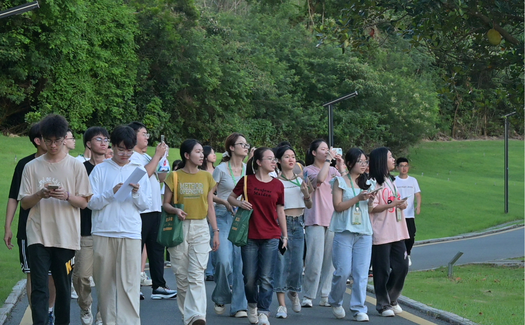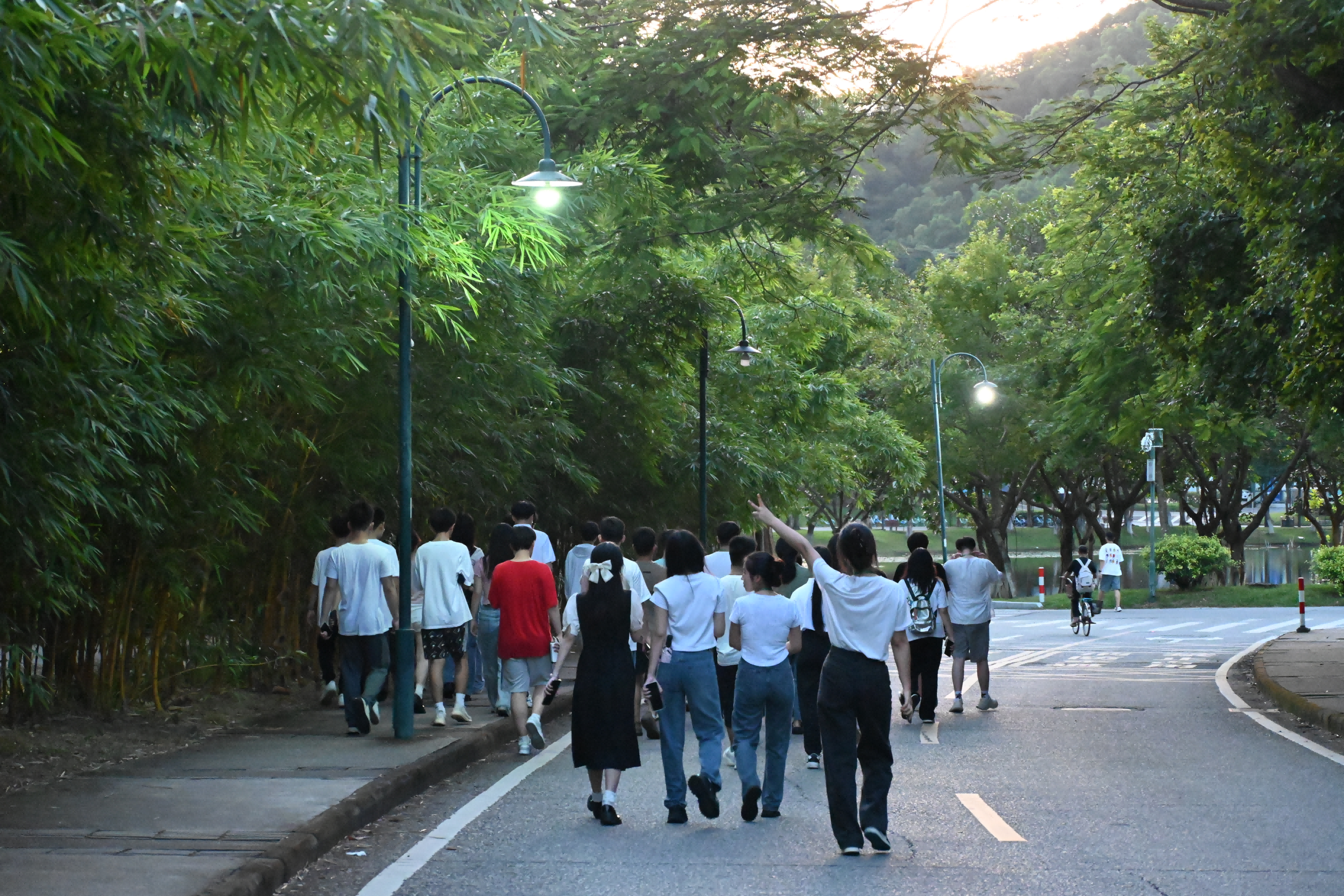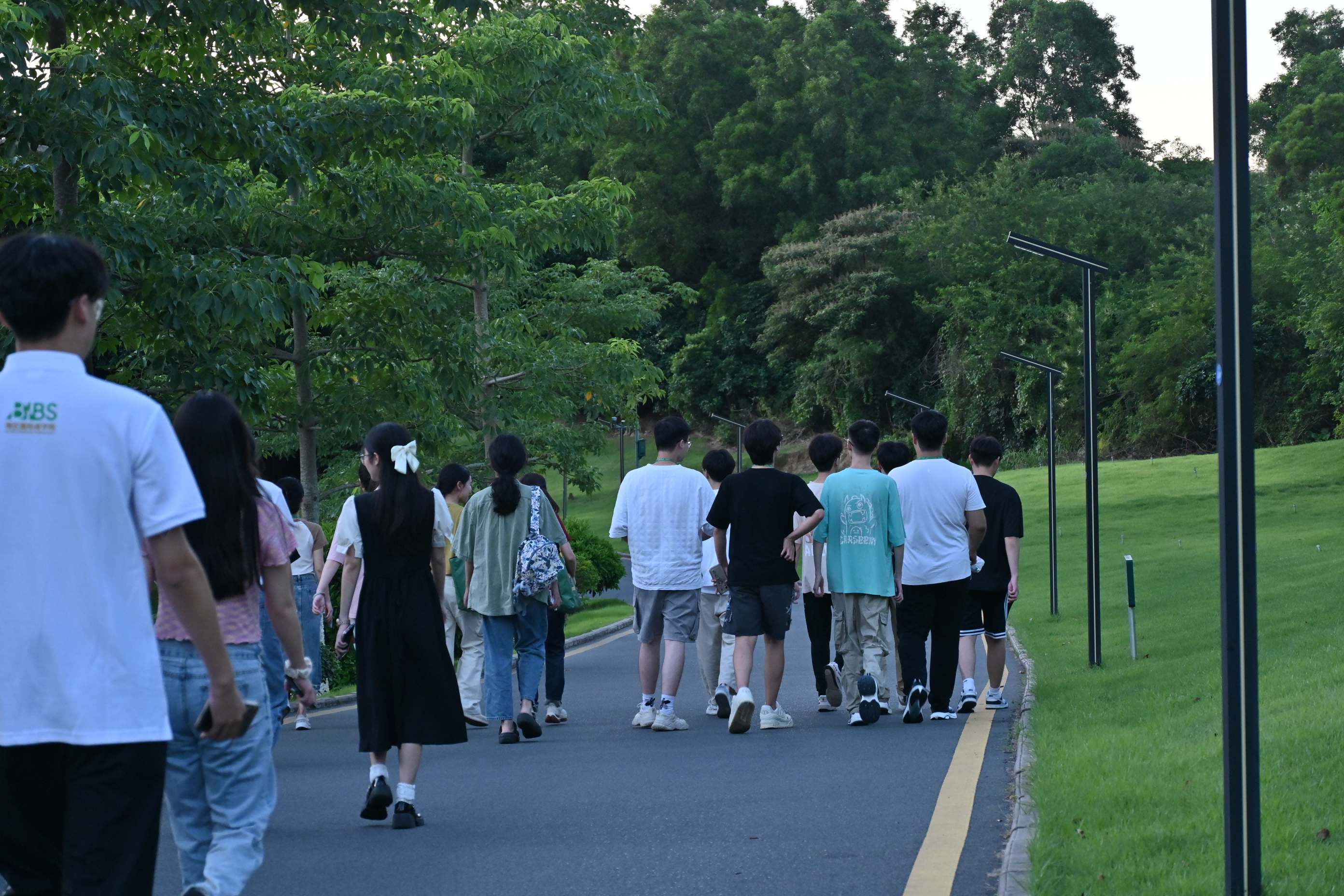 傍晚,在学长学姐们的带领下,大家踏上了校园探索之旅。从活力四射的游泳馆到现代化的教学楼,从绿树成荫的林荫道到波光粼粼的湖畔,每一处都散发着浓厚的学术氛围和青春的气息。同学们纷纷拿起手机,记录下这难忘的瞬间。