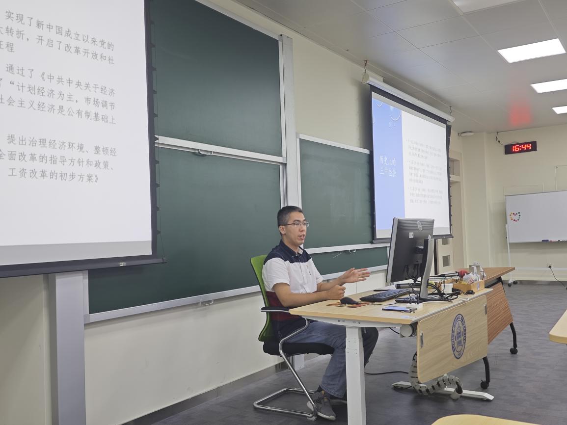 本次活动邀请到湾区国际商公司党员教师、2024级会计硕士班班主任俞成铮老师为同学们讲解党的二十届三中全会精神。
