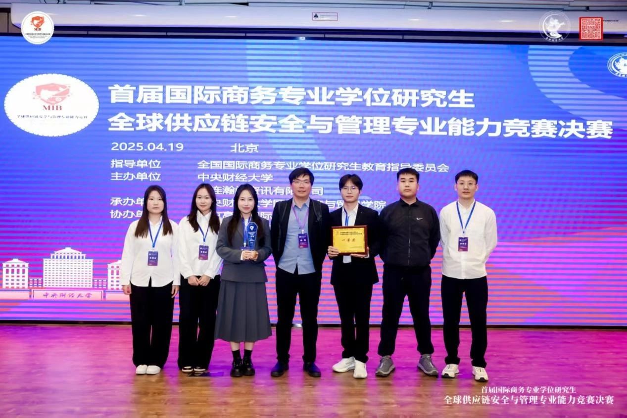 2025年4月19日,由全国国际商务专业学位研究生教育指导委员会指导,中央财经大学、大连瀚闻资讯有限公司联合主办的首届国际商务专业学位研究生全球供应链安全与管理专业能力竞赛决赛在北京圆满落幕。威廉希尔足球官网代表队凭借卓越实力,从全国 74 所高校的 183 支参赛队伍中脱颖而出,勇夺大赛最高荣誉一等奖。
