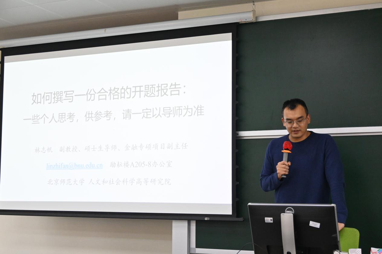 讲座开场,林志帆老师便直切主题,着重强调开题报告在研究生学术生涯中的重要地位。他指出,开题报告宛如基石,稳固支撑着研究生后续开展学术研究、完成毕业论文的全过程。紧接着,林老师对硕士论文开题的具体要求进行了细致入微的解读,让同学们对开题环节的标准与规范有了清晰认知。
