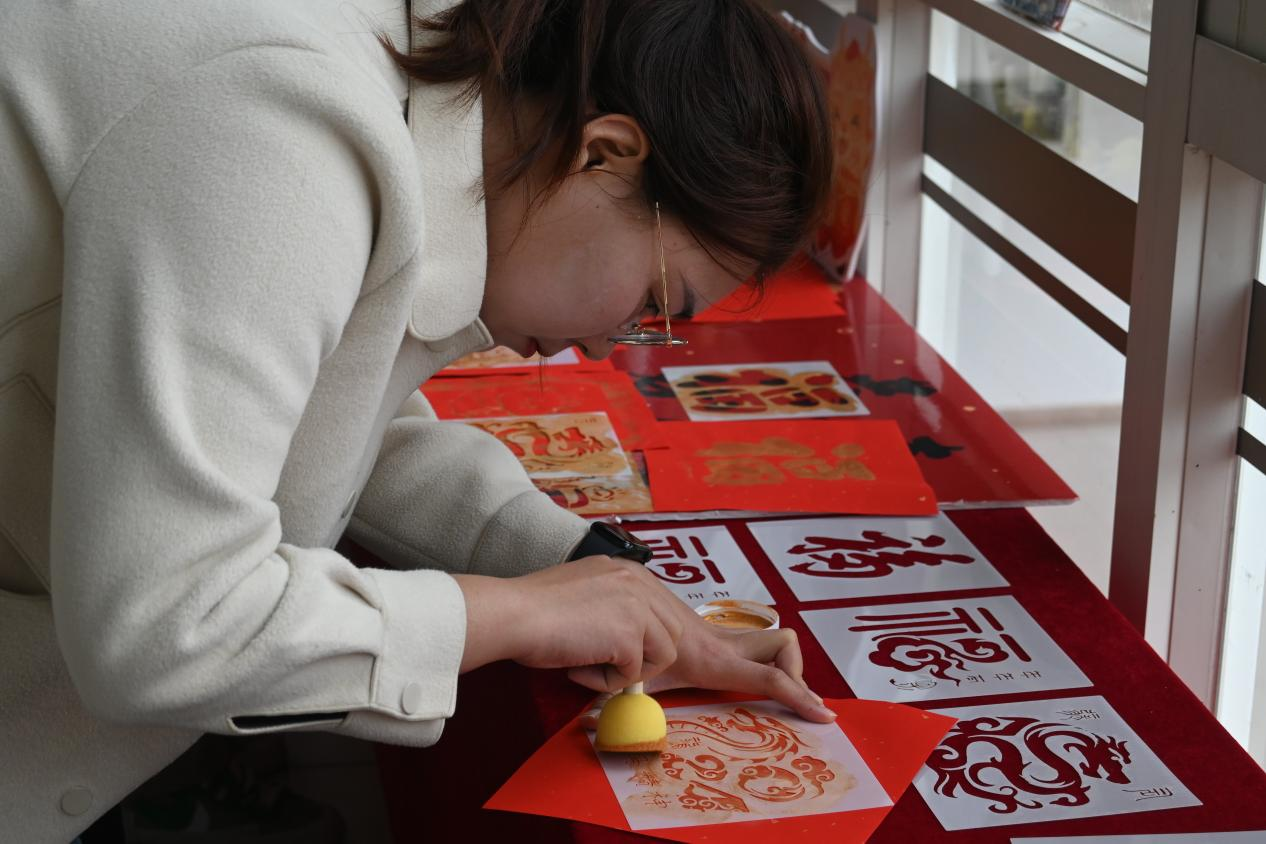 为增强同学们的体验感和归属感,本次元宵喜乐会分别设置了拍照打卡区、茶歇区和活动体验区,通过富有节日气息的装饰营造了其乐融融的元宵氛围,参与活动的同学可以品尝公司提供的茶水糕点,体验“灯笼祈愿”、“拓福迎春”、“抽签迎福”三个手工制作活动,制作完成后可携带作品前往打卡区拍照留念。别具一格的活动设计使得本次元宵喜乐会反响热烈,参与度高。不少同学将拓印的作品留在现场作装饰,为其他同学送上自己的元宵祝福。