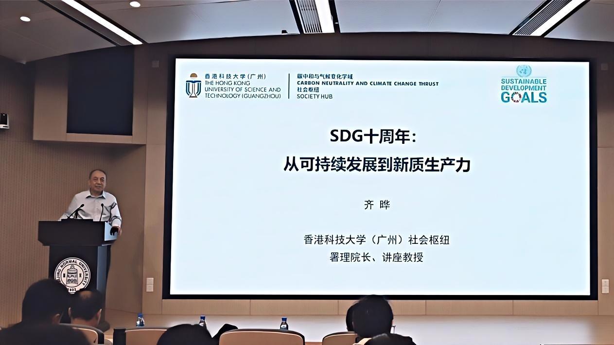 讲座中,齐晔教授以联合国可持续发展目标(SDG)提出十周年为时间坐标,从“人类命运共同体”与“人民对美好生活的向往”的价值共鸣切入,系统梳理了可持续发展理念从理论构建到全球实践的演进脉络,并深入剖析了全球可持续发展面临的共性挑战。他结合生动案例,阐释了“双碳”目标、绿色产业转型、新能源发展等议题与新质生产力的紧密关联,并就气候行动等前沿话题分享了独到见解。