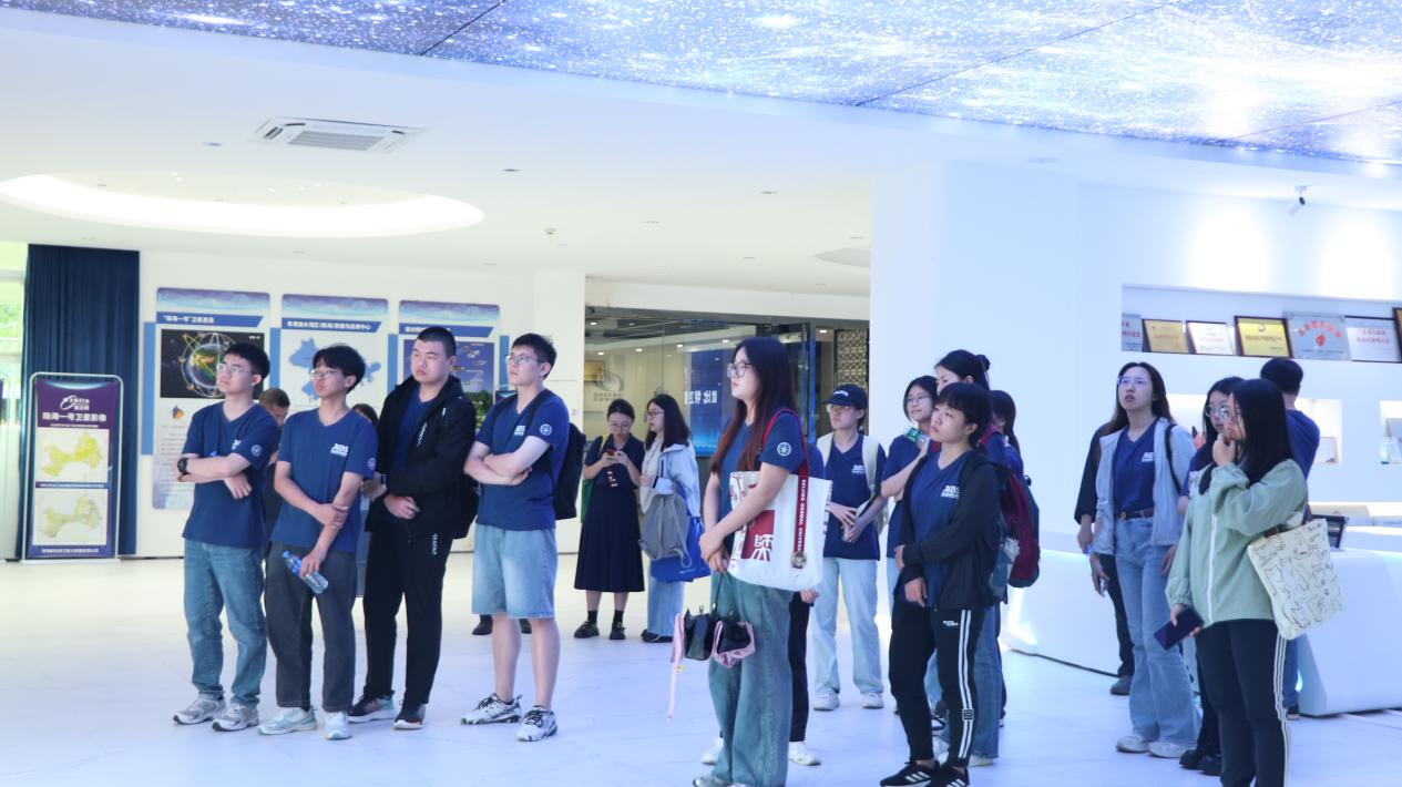 随后,同学们参观了航宇微公司展厅,有幸目睹诸多先进设备。1:1遥感卫星模型及实时卫星轨道,了解卫星零部件构造及太空运行原理;卫星数据应用平台,展示遥感数据在各行各业中的典型应用,为政务部门、行业机构等提供科学数据支撑,让同学们直观感受到航宇微的硬核实力。