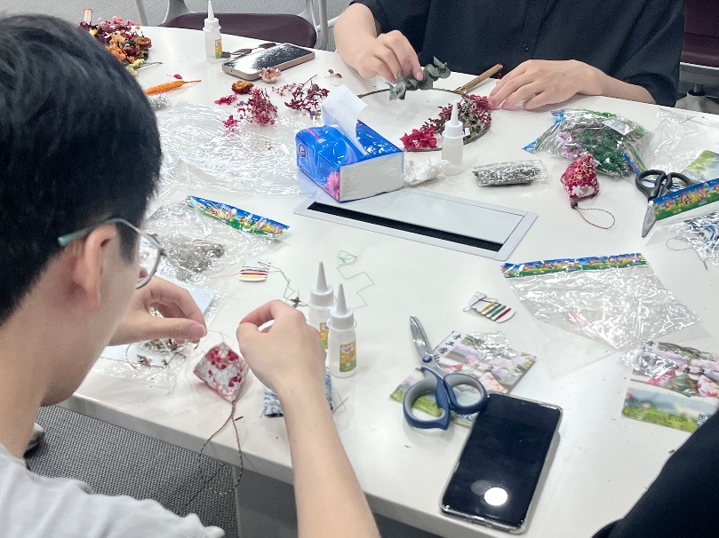 随后进入创意香囊DIY环节,同学们尽情施展创意,沉浸在自由设计香囊的惬意之中。同学们通过手工活动忘却压力烦恼,最终一个个承载美好祝福的小小香囊诞生。