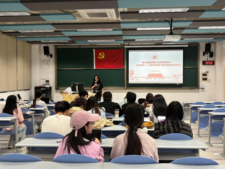 为深入学习贯彻党的二十大及二十届四中全会精神,加强员工党员纪律意识与党性修养,2025年11月24日,2025级会计硕士党支部在励耘楼A105组织开展“凝心铸魂强根基 正风肃纪促担当”主题党日活动。本次活动由党支部全体党员共17人参与。