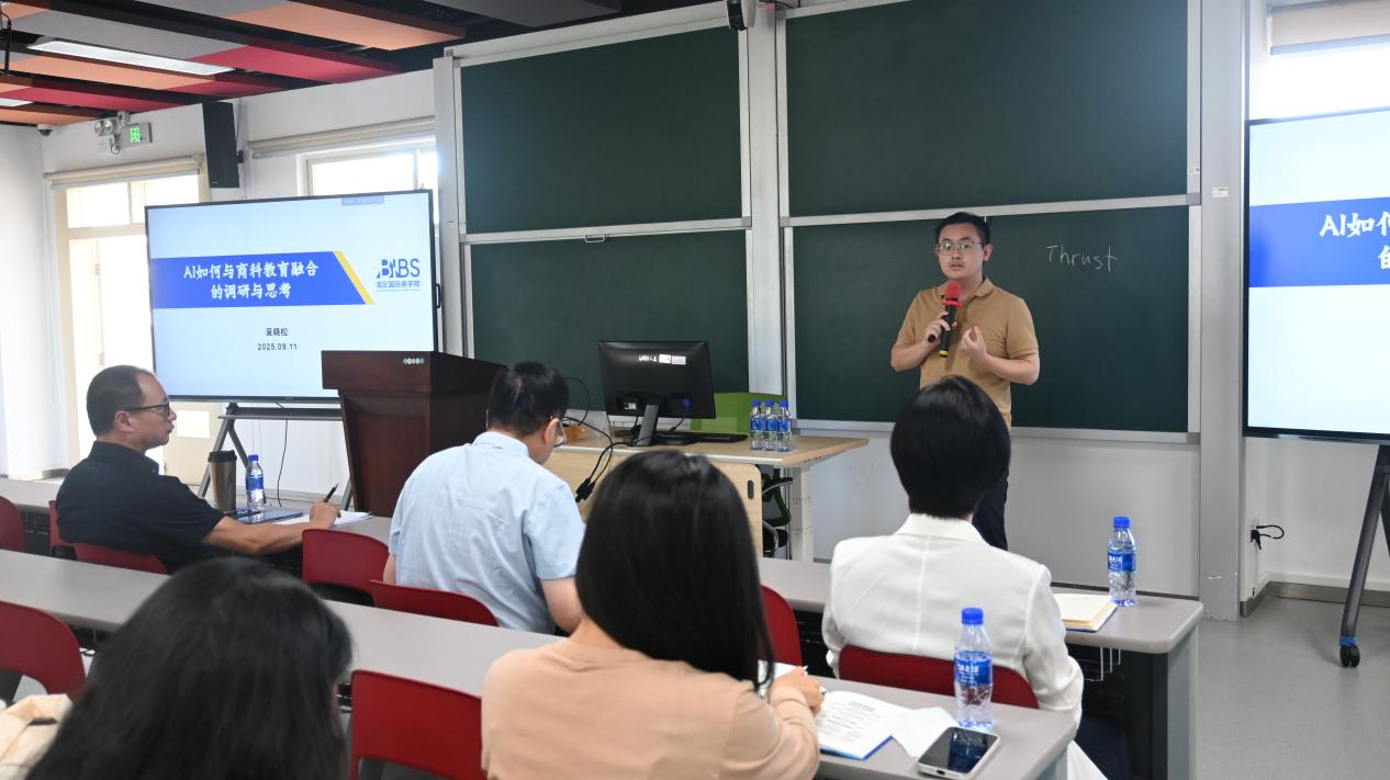 下午的内部研讨环节,教师代表聚焦核心议题展开靶向汇报,直击发展痛点、提出破局思路。吴晓松围绕“AI与商科教育深度融合”主题,从特色课程建设、教师队伍建设等方面提出建议;崔传涛系统分析公司科研工作现状与挑战,提出以“有组织科研”为抓手,强化团队协作、推动成果转化,提前布局科研奖项申报与学术著作撰写的提升路径;谢毅梳理了公司国际化工作的进展与瓶颈,并从攻坚全英文课程体系搭建、拓展国际交换渠道、推进国际资质认证等渠道提出工作建议。