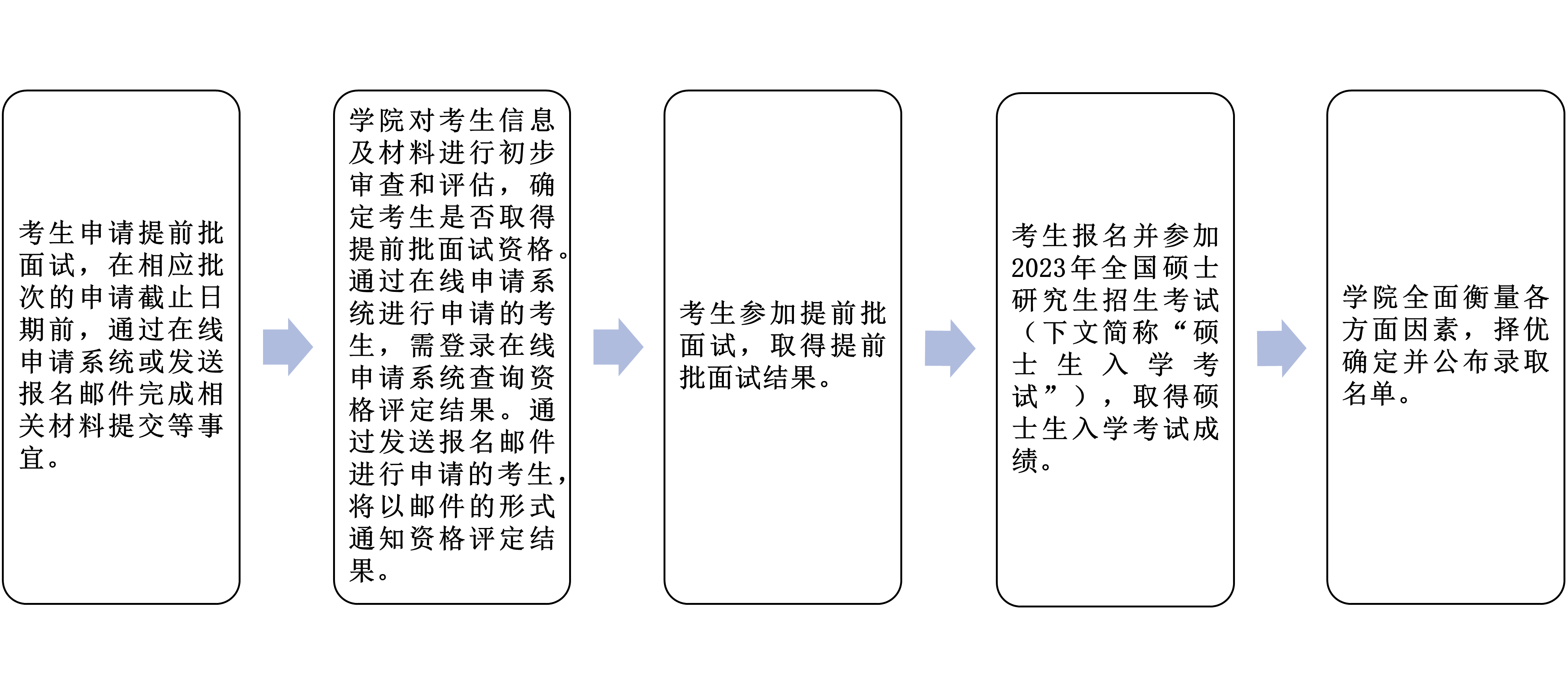 1.考生申请提前批面试,在相应批次的申请截止日期前,通过在线申请系统或发送报名邮件完成相关材料提交等事宜。