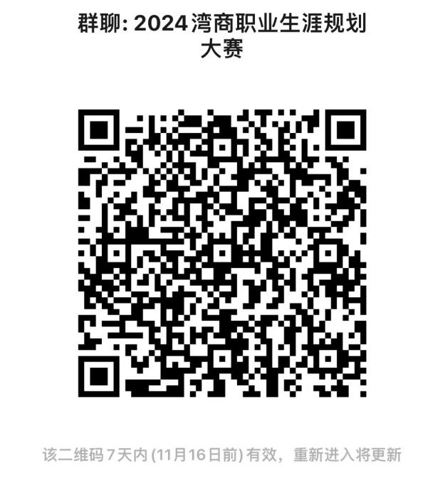 4. 参赛选手请加入“2024湾商职业生涯规划大赛”微信群,后续将在微信群内发布通知信息。